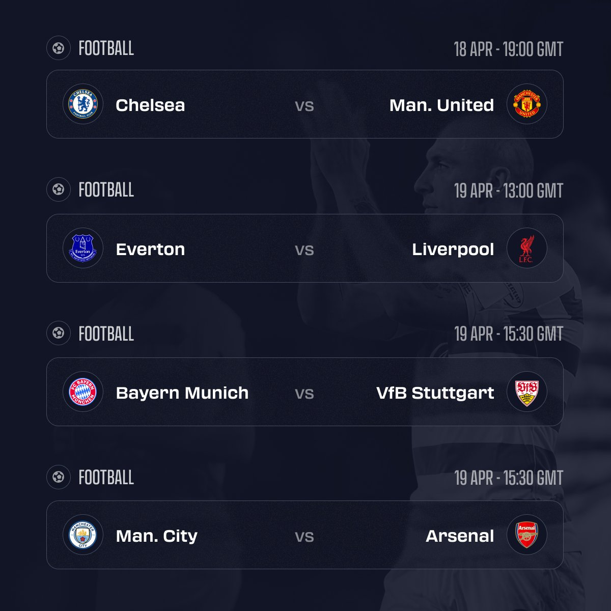 - Sunday's marquee Premier League fixture is Manchester City vs Arsenal at the Etihad, with Arteta's side juggling a Champions League semi-final against Atlético Madrid while City look to press their league advantage.