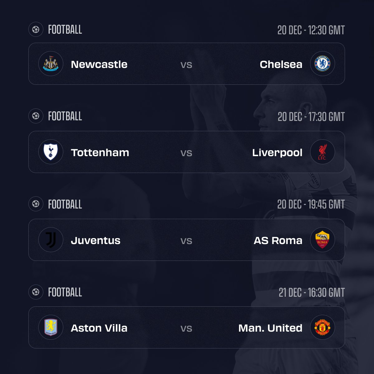 - A historic matchup awaits as Juventus host Roma. Juventus sit just outside the top four, with only four points separating them from fourth-placed Roma. Three points are crucial this weekend to keep Juventus firmly in the title race.