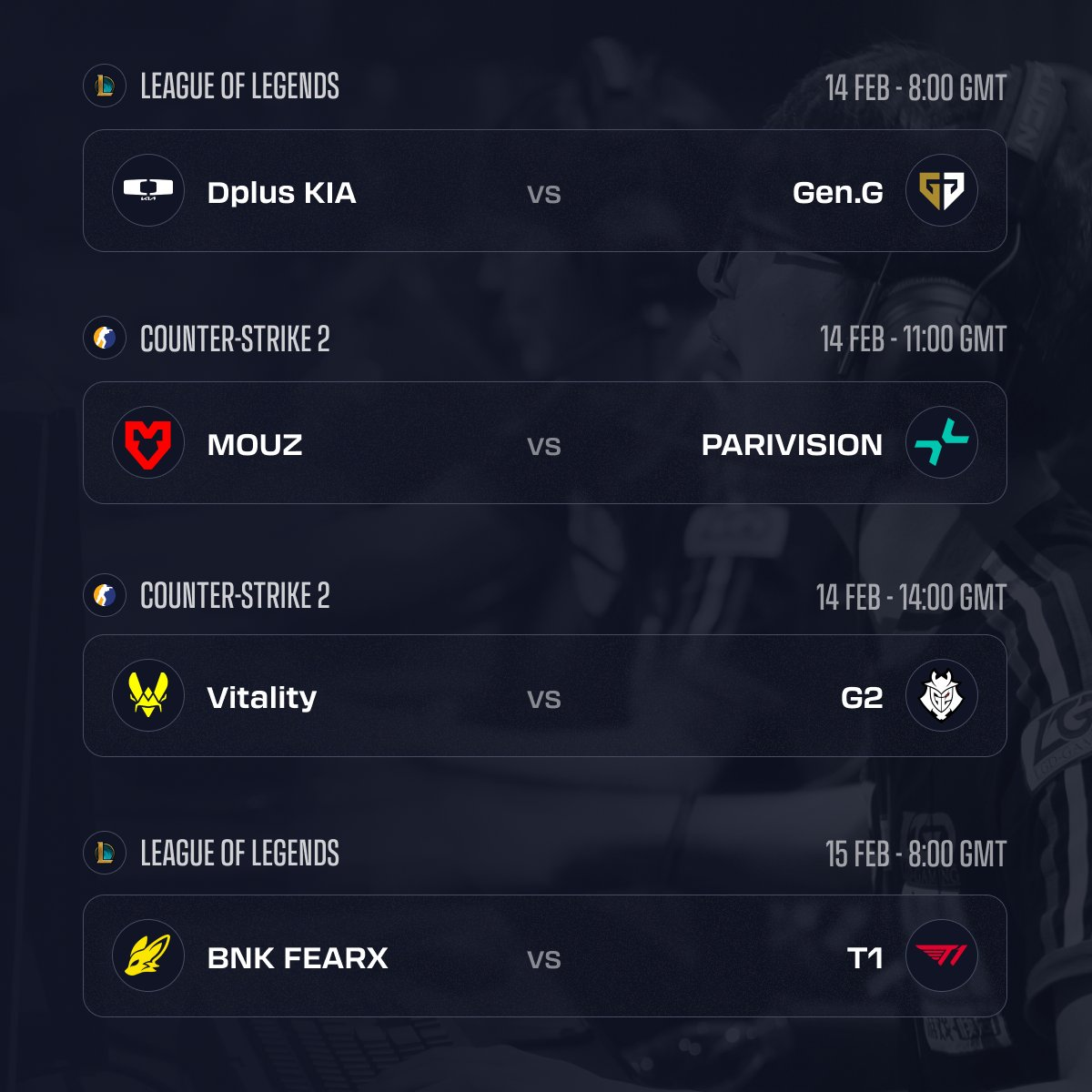 - Vitality, hot off their IEM Krakow win take on G2 in their opening match. It's looking like there are no easy games in Cluj-Napoca.
