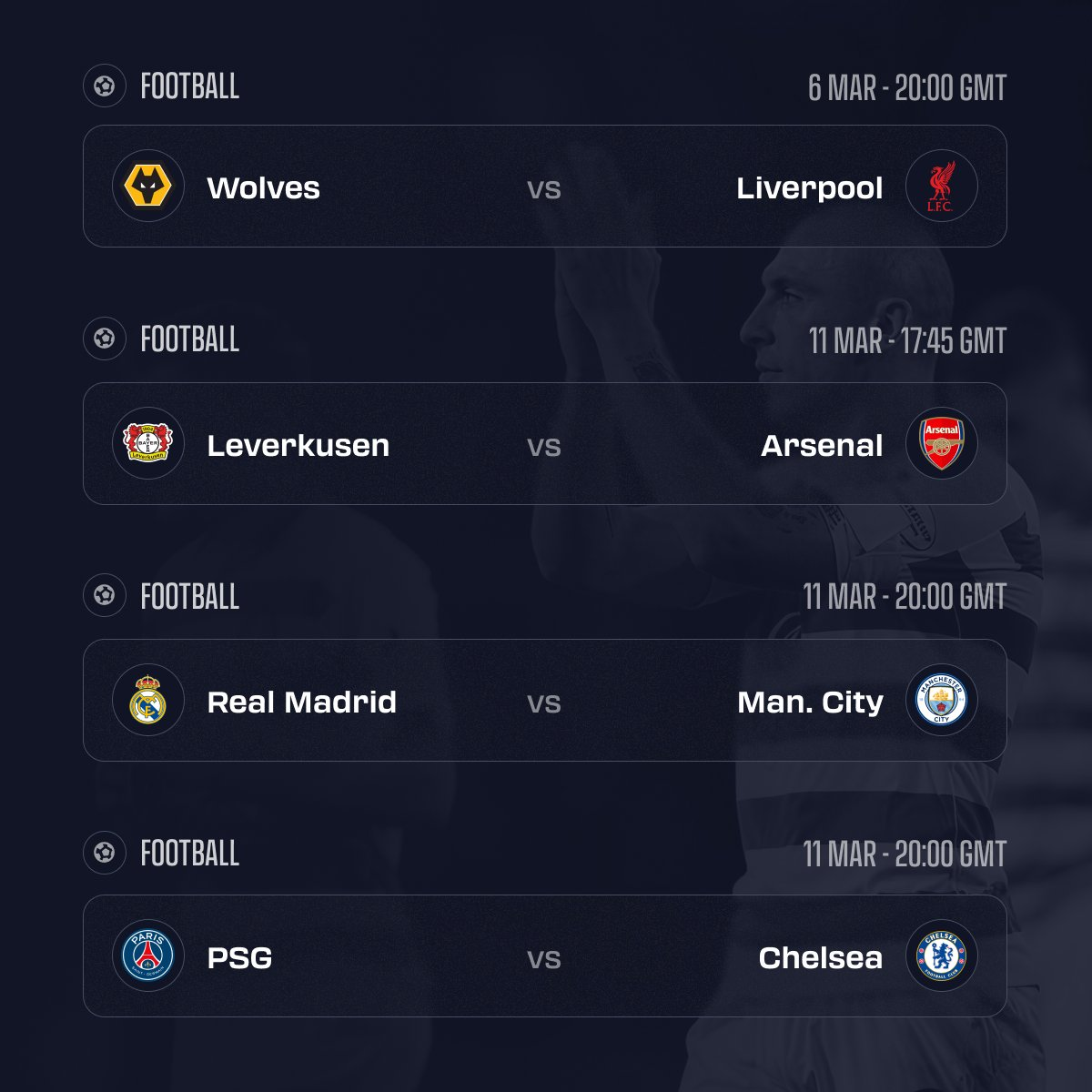 - Arsenal head to Germany to take on Leverkusen in the first leg of the Champions League Round of 16.