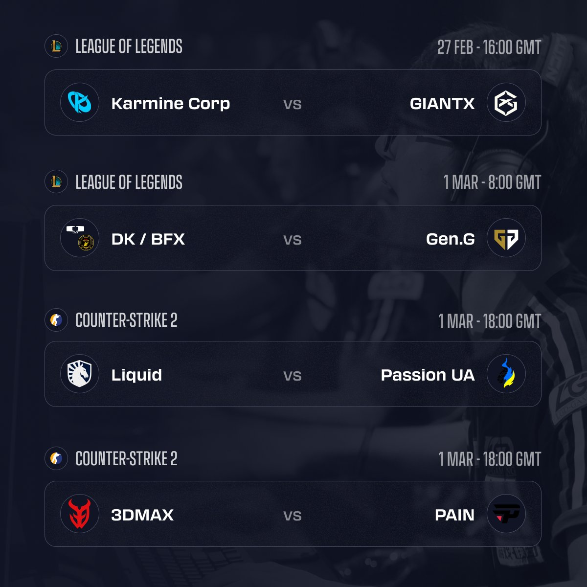 Upcoming Esports 🕹️