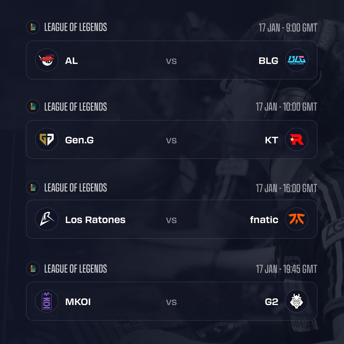 - A repeat of the LPL Split 2 final as AL take on BLG. With the return of XUN and the addition of Viper, BLG are looking dangerous on the Rift.