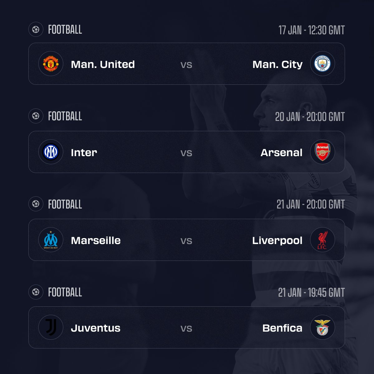 - Serie A leaders Inter host Premier League leaders Arsenal in the Champions League midweek.