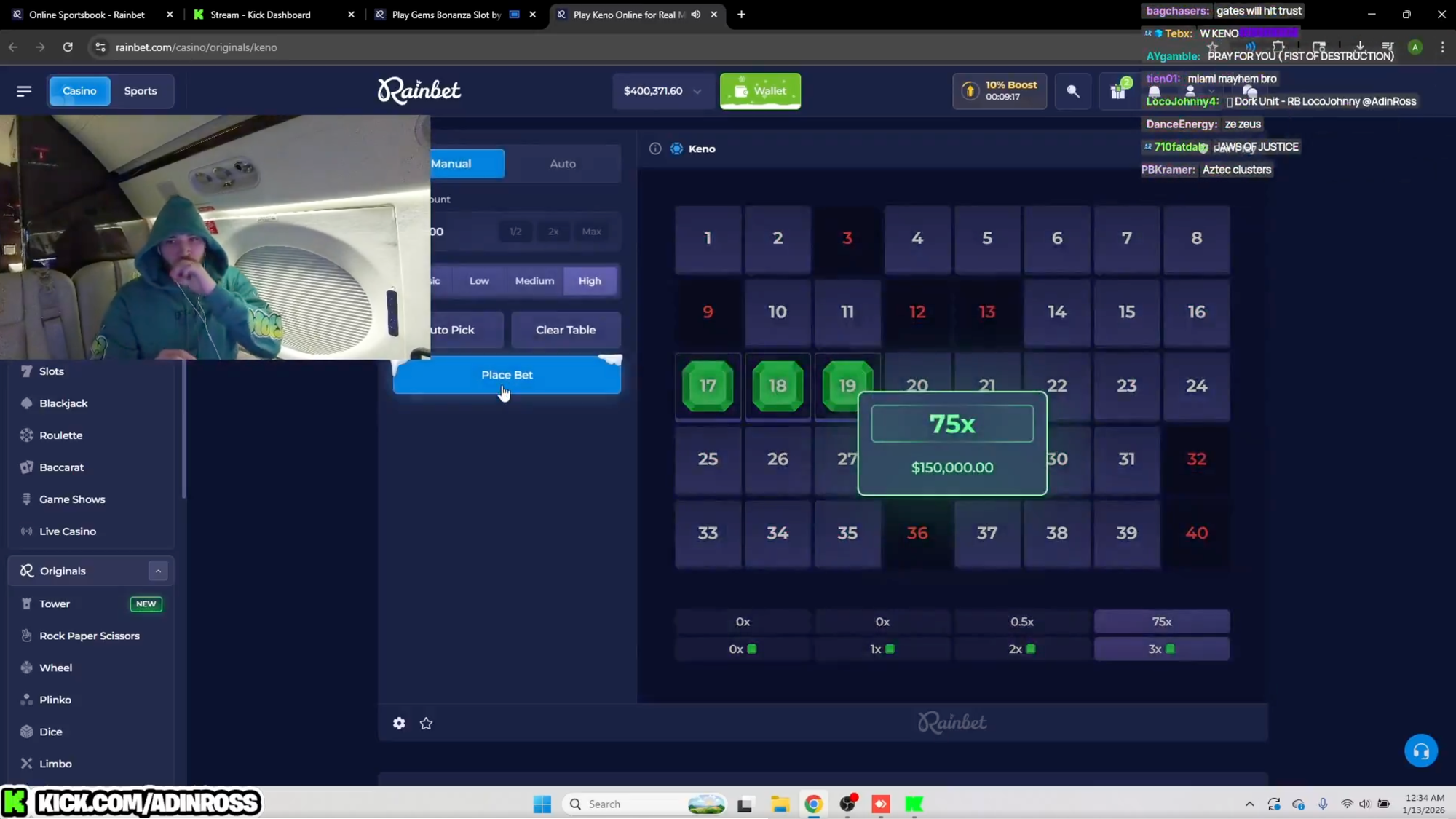 Adin Ross hits a $150,000 Keno win whilst live on a Private Jet via Starlink,