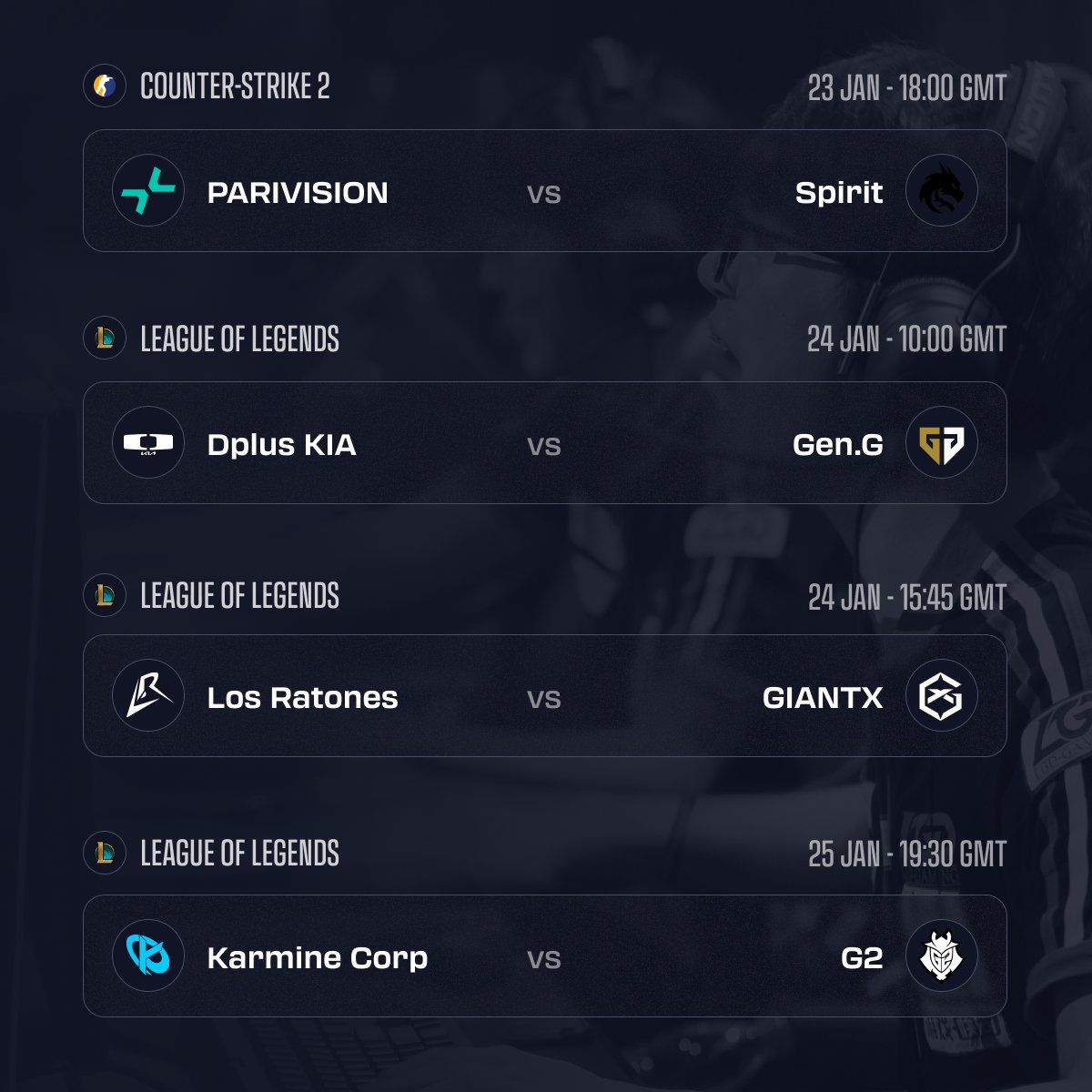 League of Legends is firing across every region, BLAST Bounty edges closer to the grand final in Counter-Strike, domestic football serves up blockbuster clashes, and the Champions League delivers elite matchups as always.