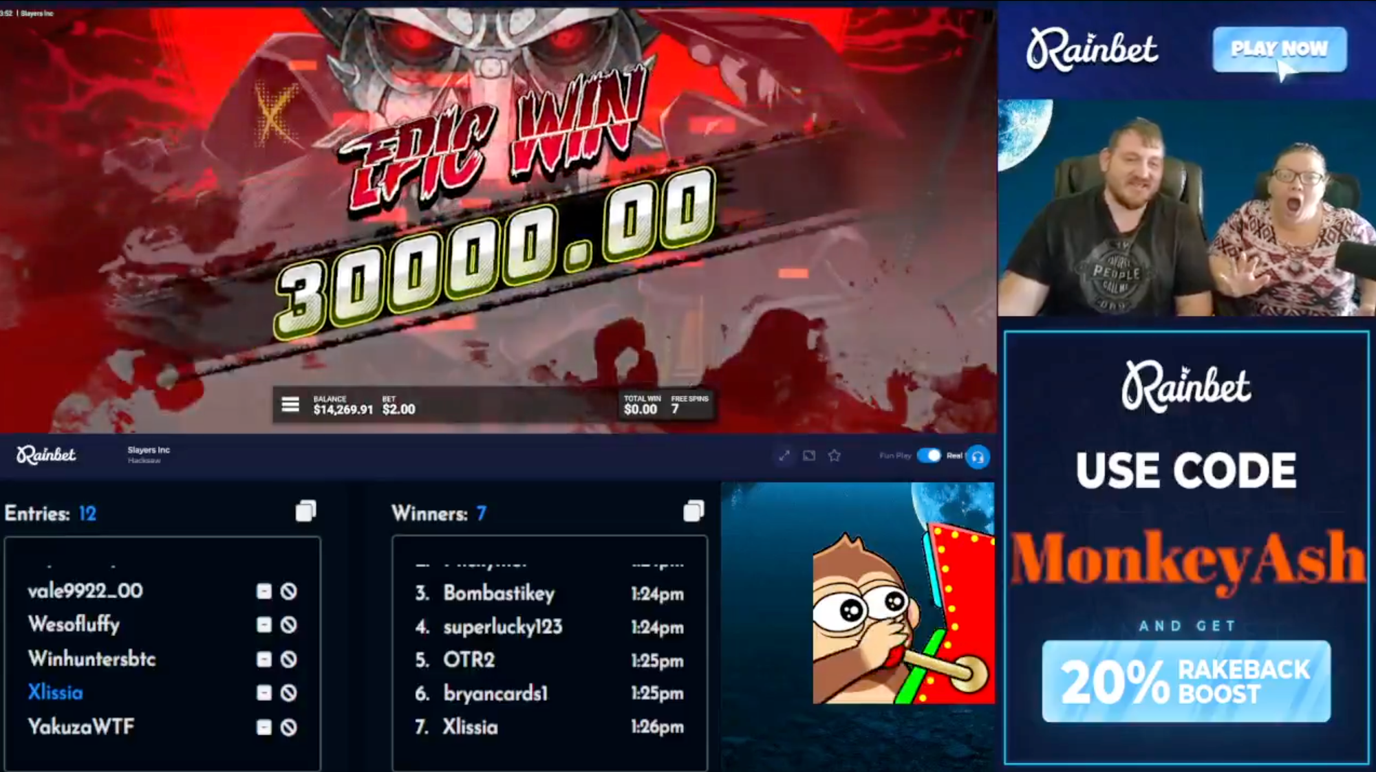 Wholesome moment as a Husband and Wife hit a max win on Hacksaw's Slayer Inc.