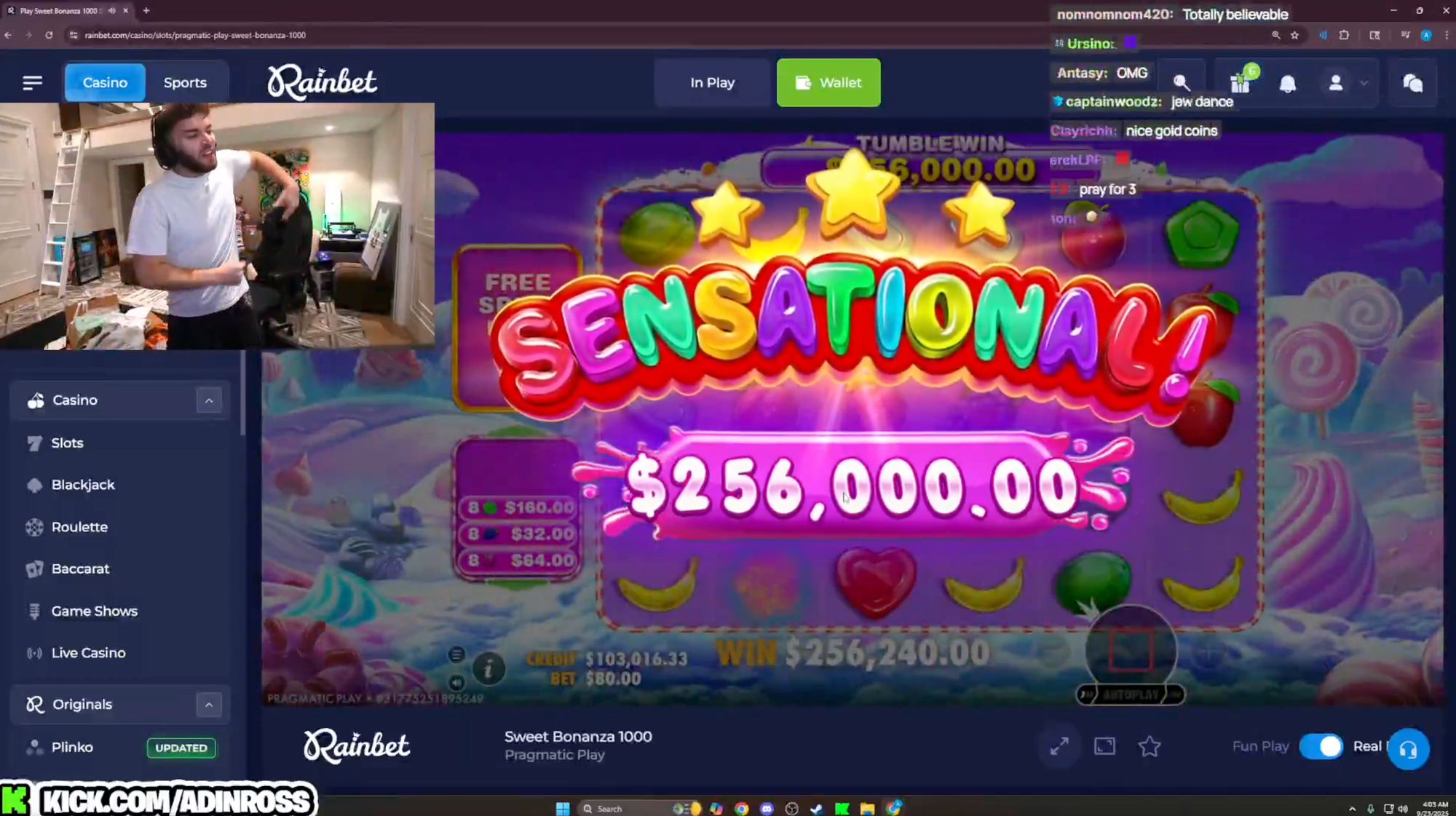 Adin Ross hits an INSANE $256,000+ win on his FIRST day of Rainbet. 🍭pic.twitter.com/7KdePHLM4p
